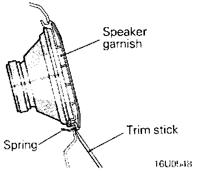 Using the trim stick, pry up the lower portion of the speaker garnish and remove the speaker garnish from the speaker bracket.
