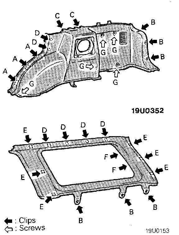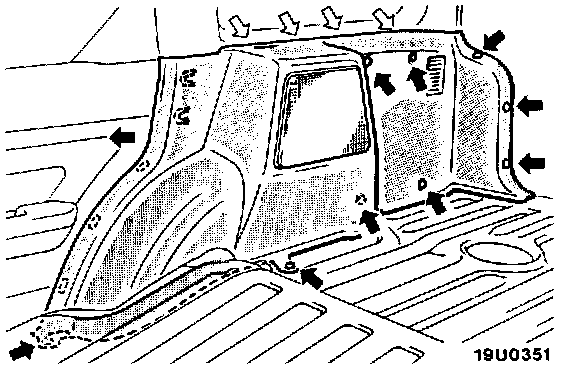 4. Remove the upper quarter trim attaching screws and clips.