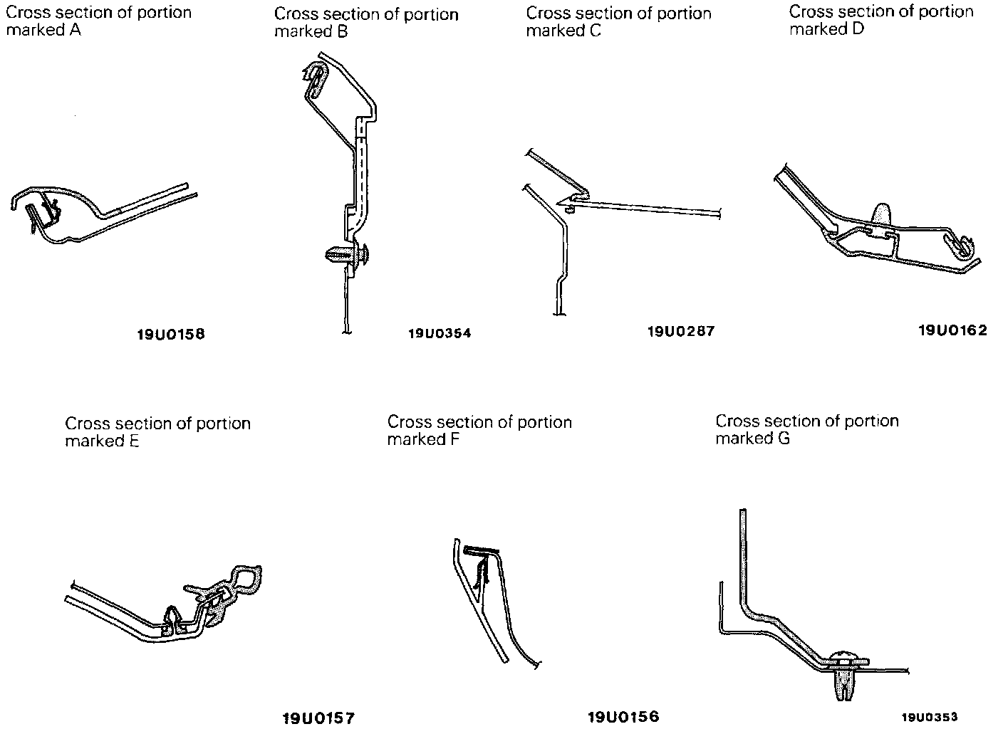 NOTE: The locations indicated by A, B, C, D, E, F and G in the illustration are shown by cross-sectional views.