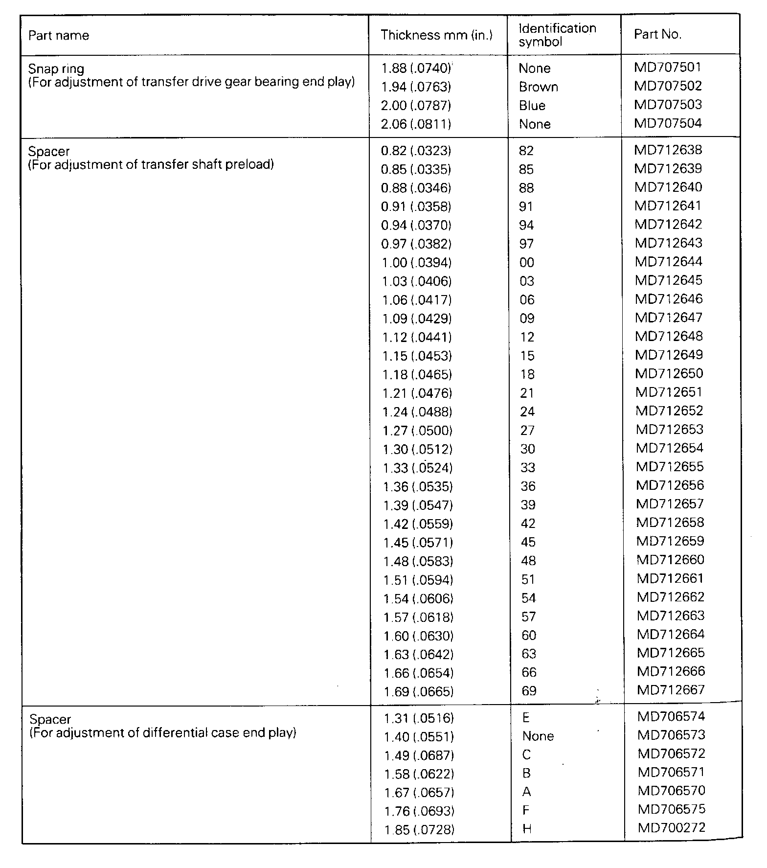 Adjustment Snap Rings And Spacers: