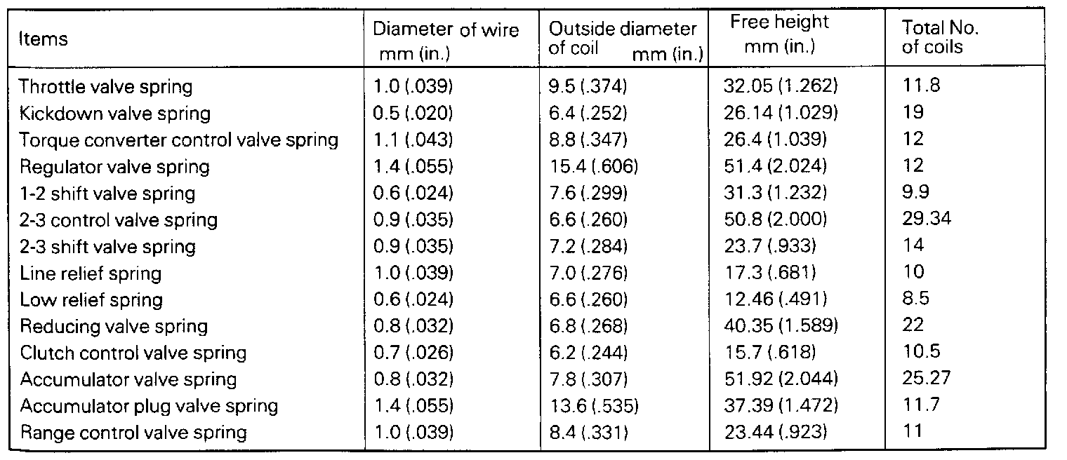 Valve Body Spring Identification Chart:
