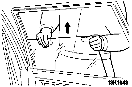 1. After removing the door window glass mounting bolts, lower the door window glass to the lower pant of the door panel.