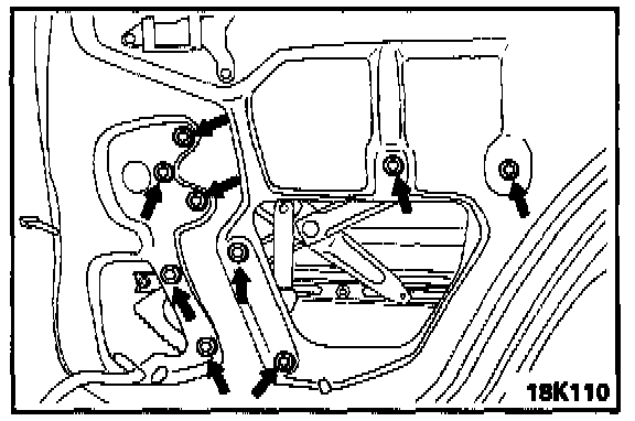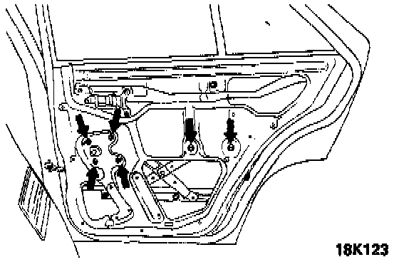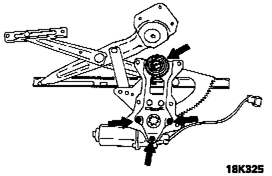 1. Remove the window regulator mounting bolts.