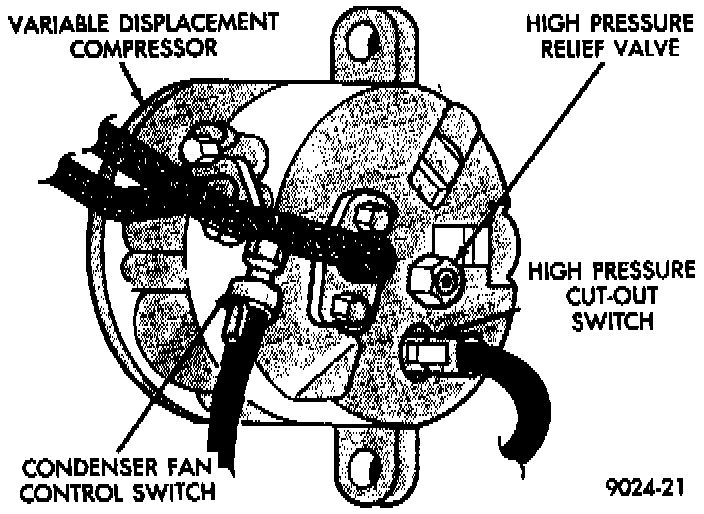 To install, reverse the preceding operation using a new 0-ring seal. Evacuate and charge the refrigerant system.