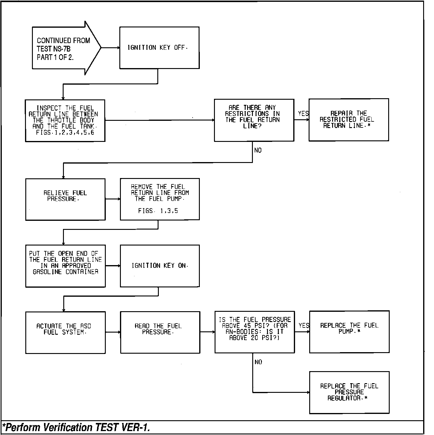 Test NS-7B - Checking For Flooding Fuel Injector, Kinked Fuel Lines, Pressure Regulator Operation: