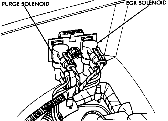 California vehicles are supplied with an on-board diagnostic system for the EGR system. This system has a solenoid that is placed in the vacuum signal line to the EGR valve. The EGR solenoid is used to disable the EGR system so that the SBEC can perform its diagnostic check. This diagnostic check is activated only during select engine/driving conditions, and checks the entire EGR system for failures. The SBEC monitors the EGR system and if the system check shows a failure, the CHECK ENGINE lamp in the instrument panel will illuminate indicating that immediate service is required.