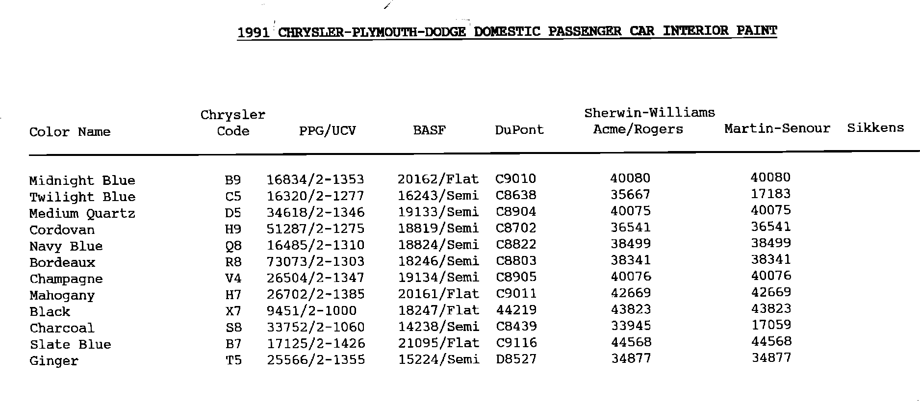 Chrysler-Plymouth-Dodge Interior Paint