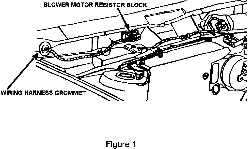 3. In the engine compartment, remove the existing blower motor resistor block, as outlined in the appropriate service manual, and replace it with resistor block P/N 4462841, see Figure 1.