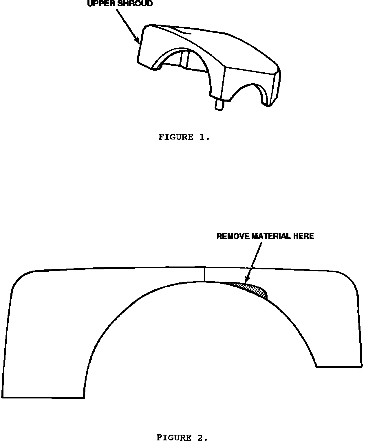 3. Using the template, Figure 2, remove material from shroud using a file or die grinder.