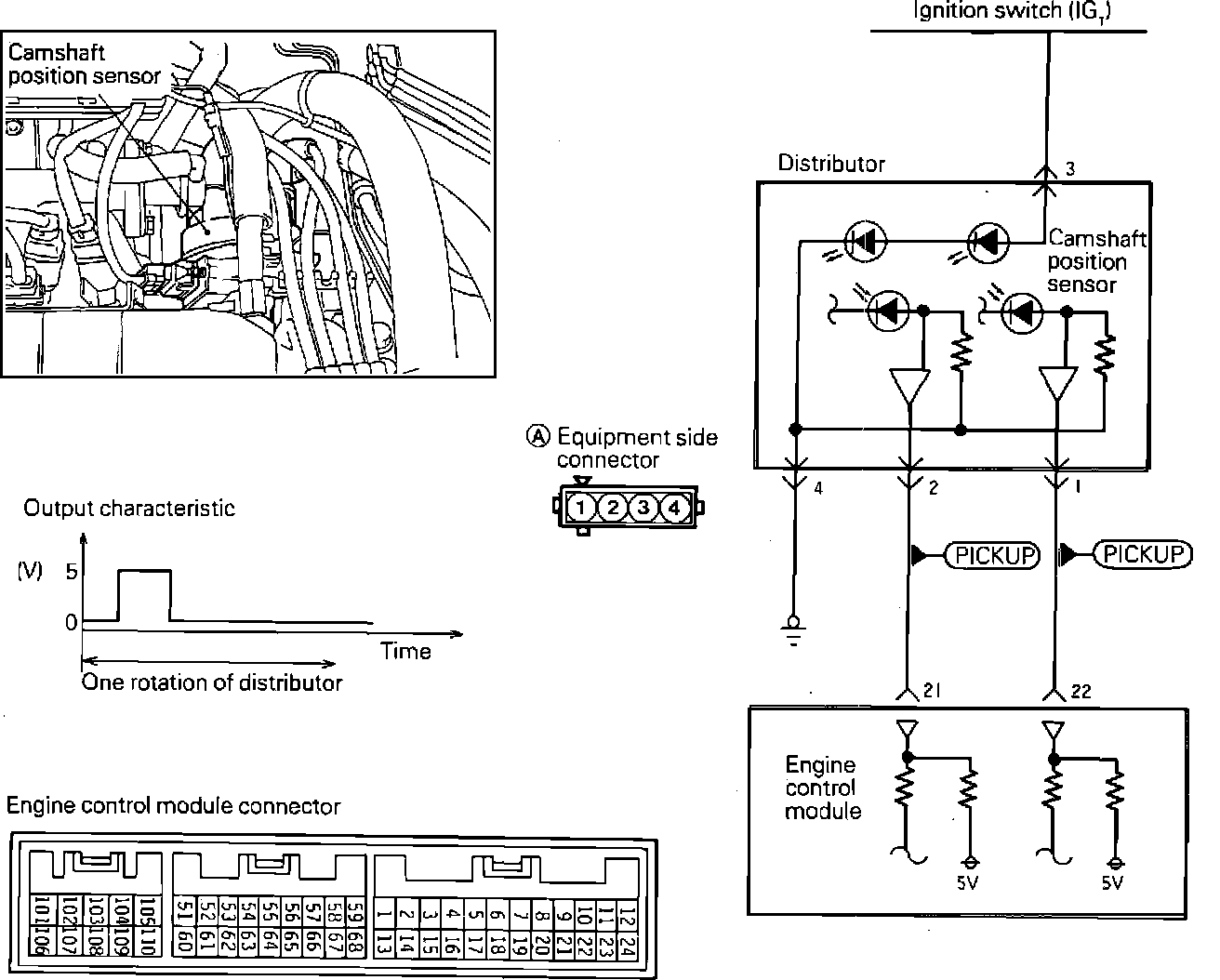 The Crank Angle Sensor and the Top Dead Center Sensor are located within the distributor housing.