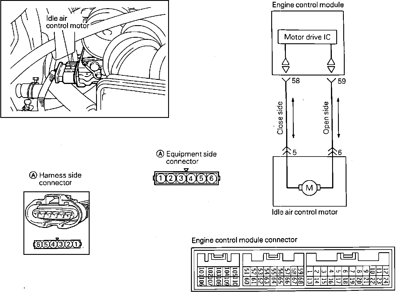 The Idle Air Control (IAC) servo adjusts the idle for air conditioning and automatic transmission loads, anti lock braking, and is used as a fast idle for cold start. The ECU uses the idle speed control (ISC) servo to make idle adjustments.