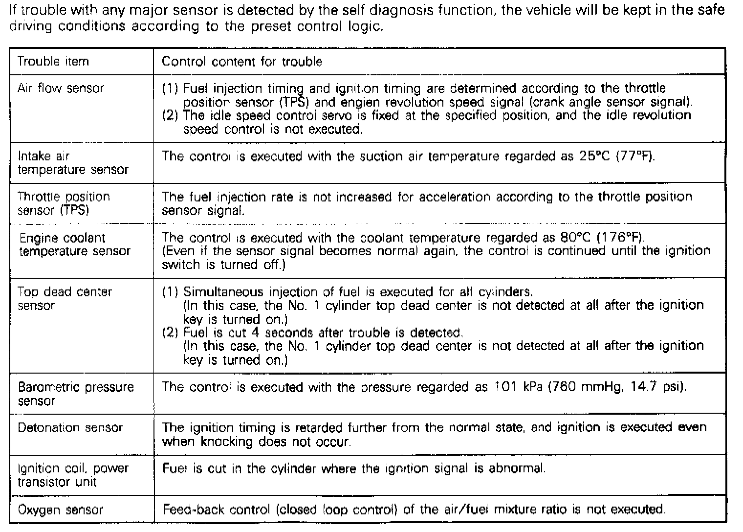 Failsafe/Back-Up Functions List: