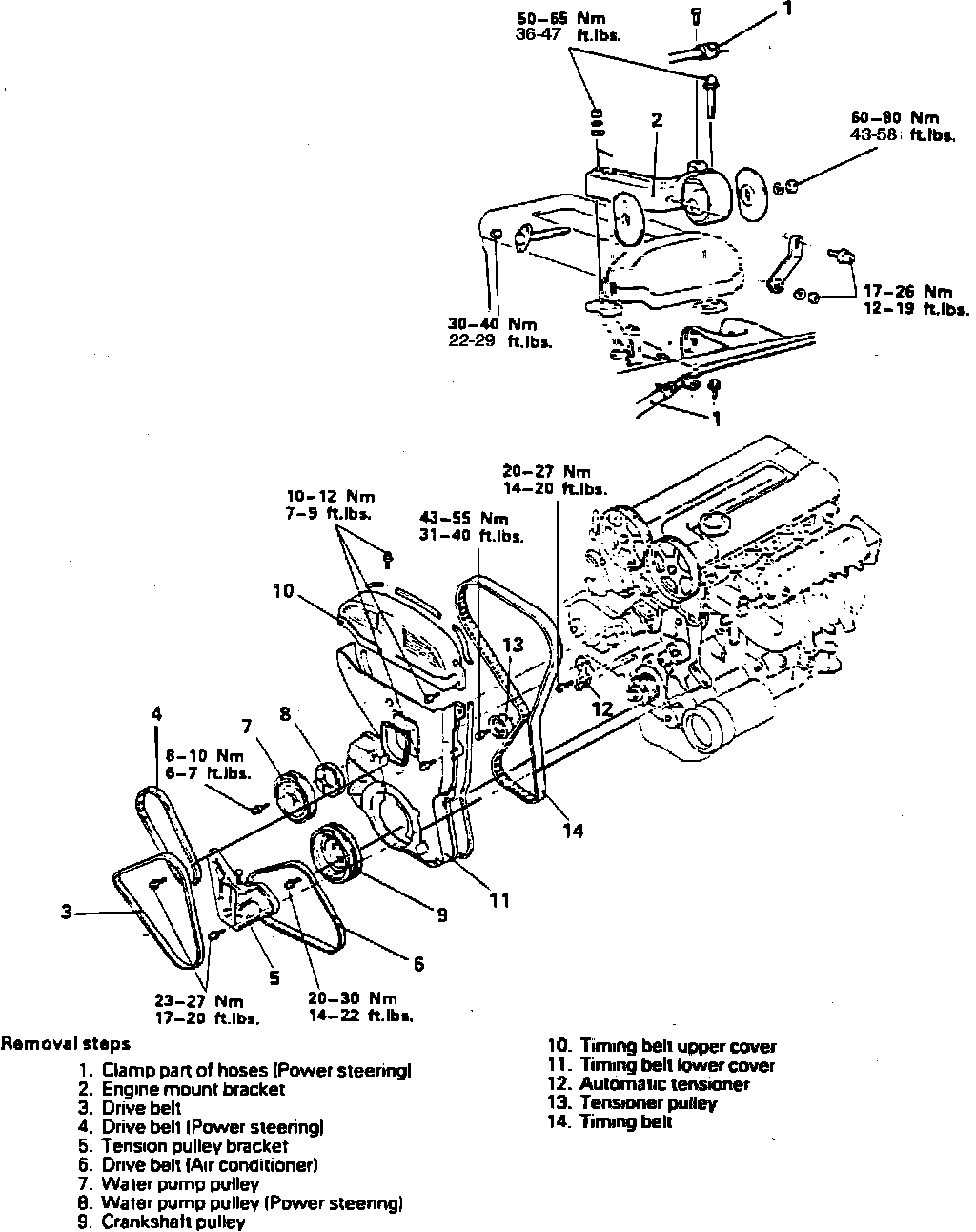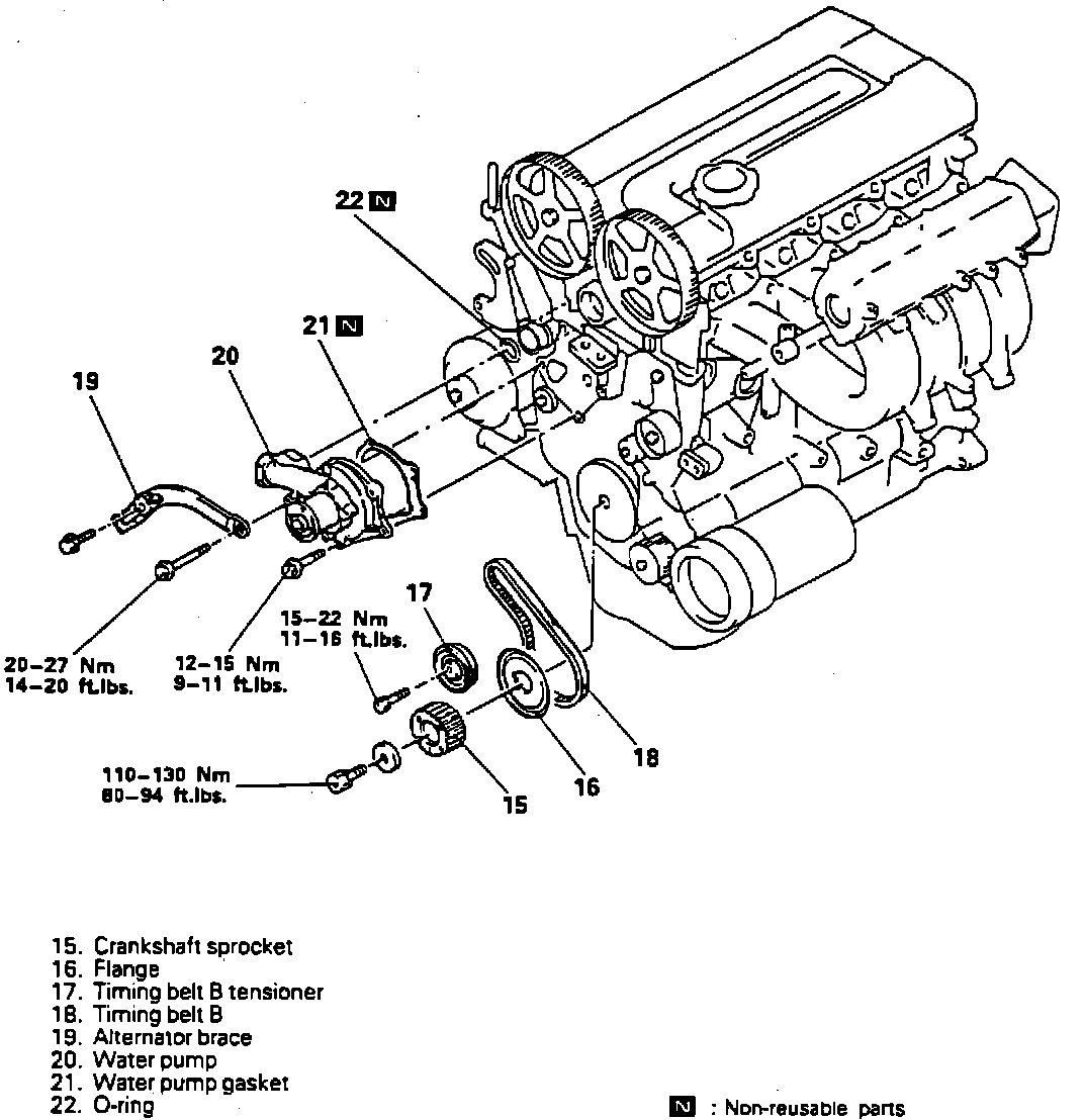 4. Remove automatic tensioner, timing belt and timing belt B, refer to TIMING BELT.
