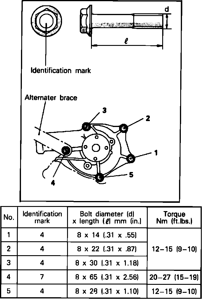 2. Refer to bolt length chart, Fig. 78, when installing water pump attaching bolts.