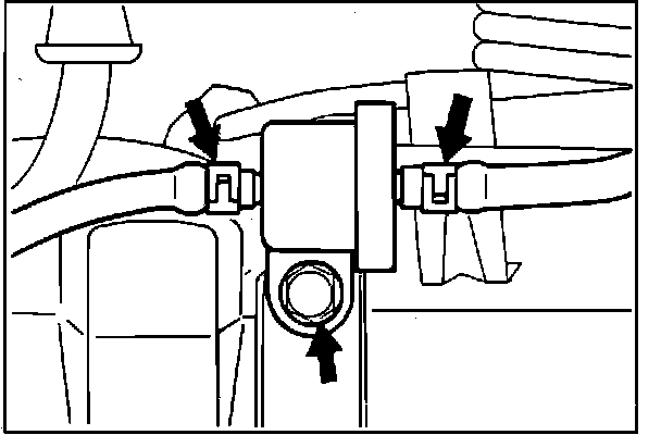 The overfill limiter is mounted in-line, in the vapor line, on the LH side of the fuel tank.
