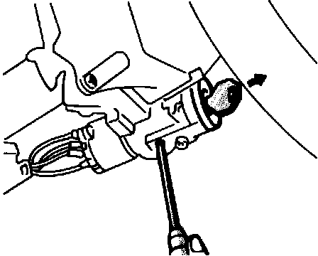 3. Using Phillips screwdriver, push lockpin, of steering lock cylinder inward and pull lock cylinder out of housing.