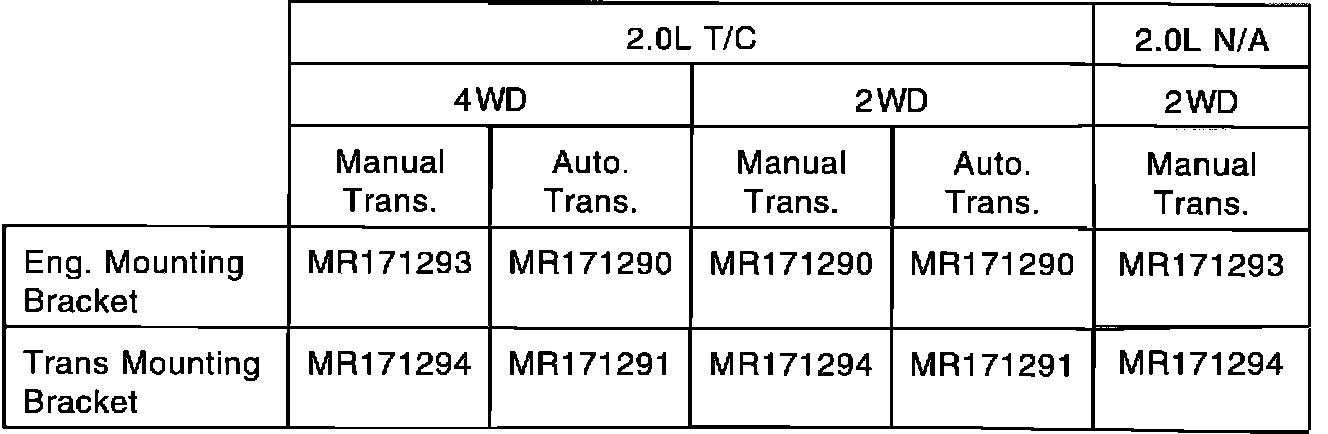 1. Following the procedures listed in the applicable Service Manual, replace the engine and the transaxle mounting brackets with the appropriate one listed in the parts section of this bulletin.