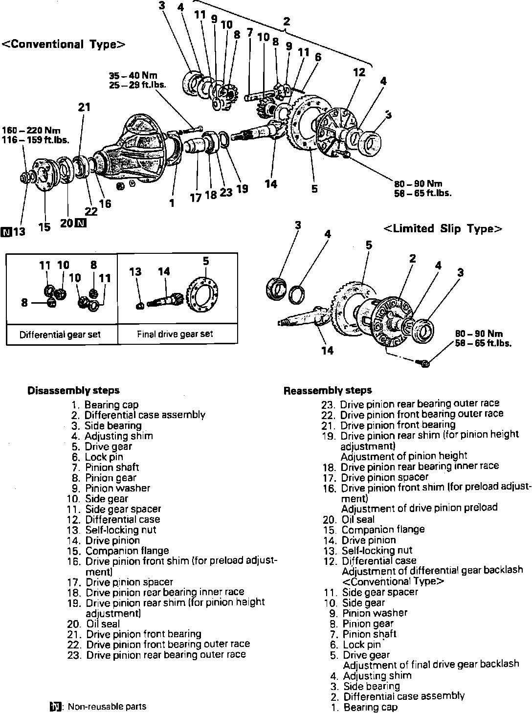 6. Drive out lockpin with a punch and remove pinion gears, pinion washers, side gears, side gear spacers and differential case.