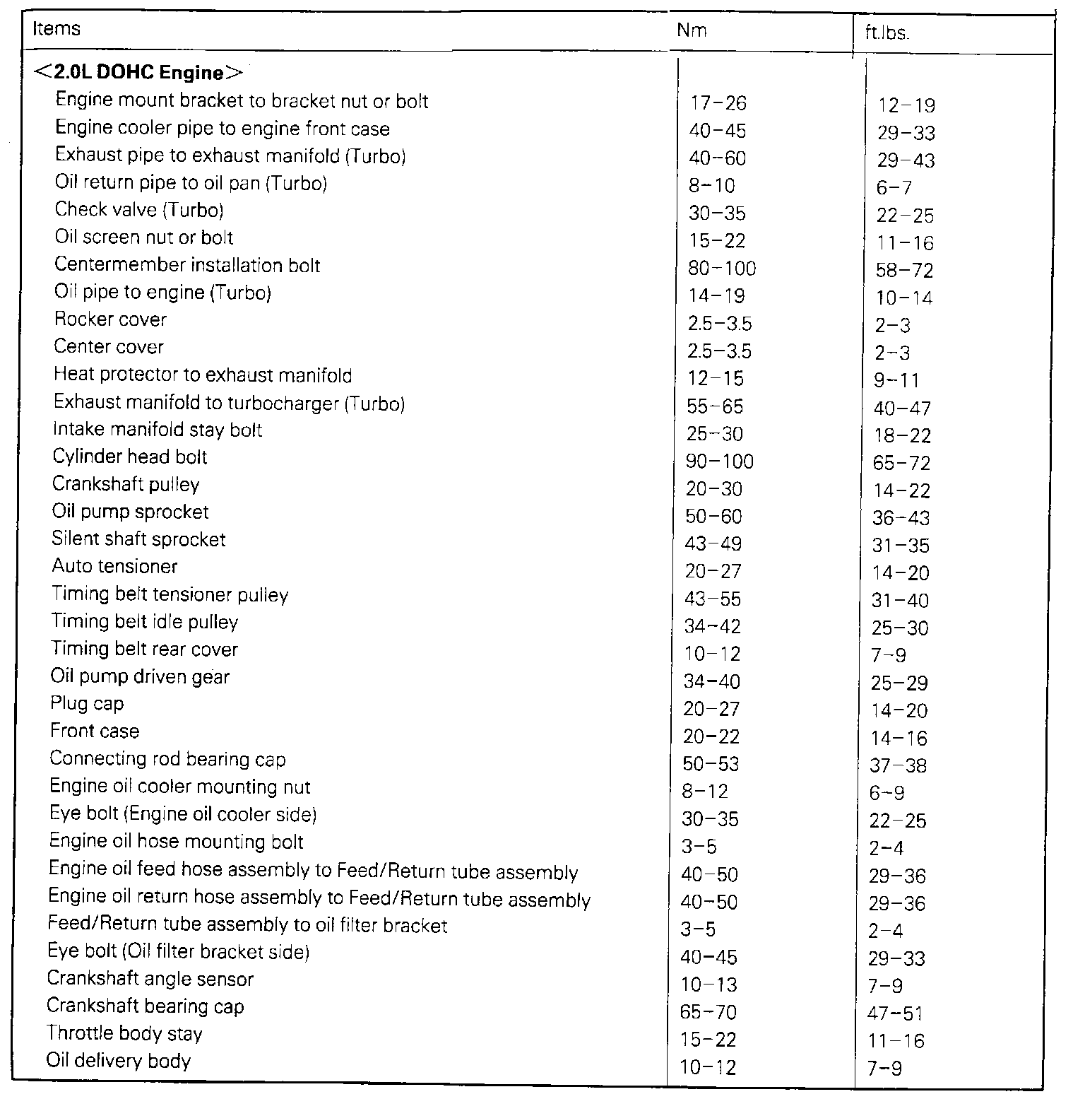 Laser FWD L4-1997cc 2.0L DOHC Turbo