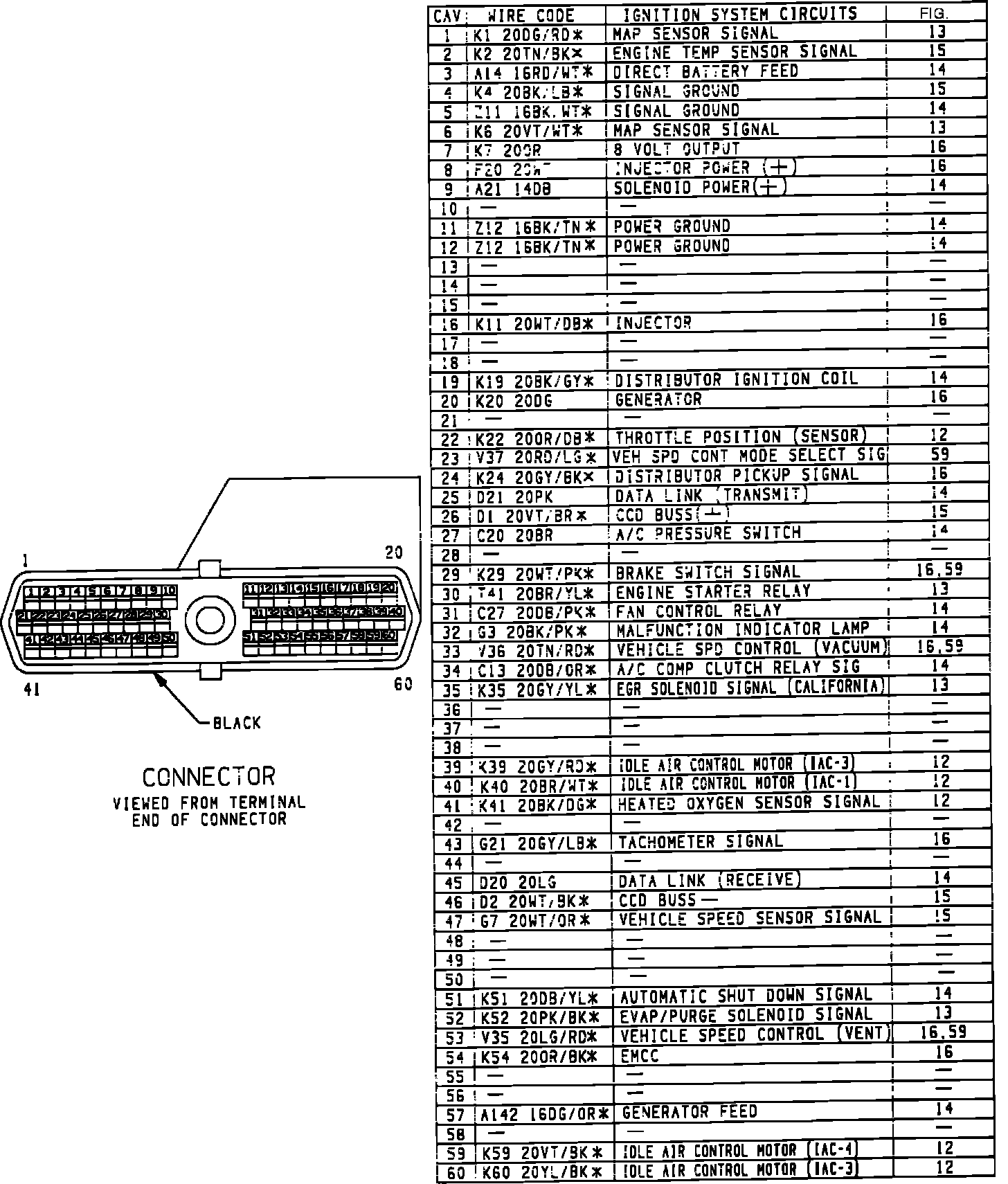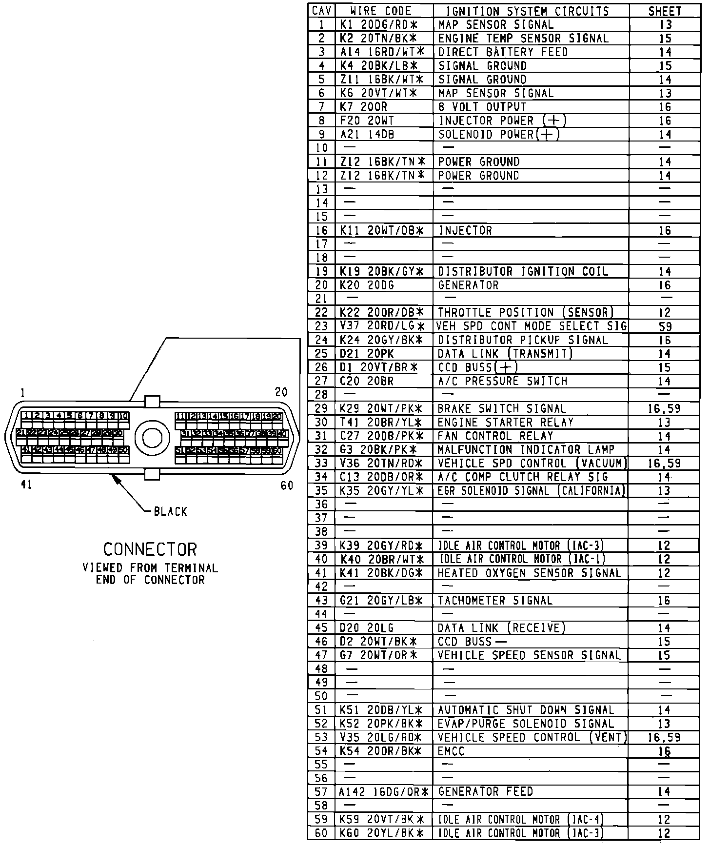 Powertrain Control Module (PCM I) Connector Pin Out: