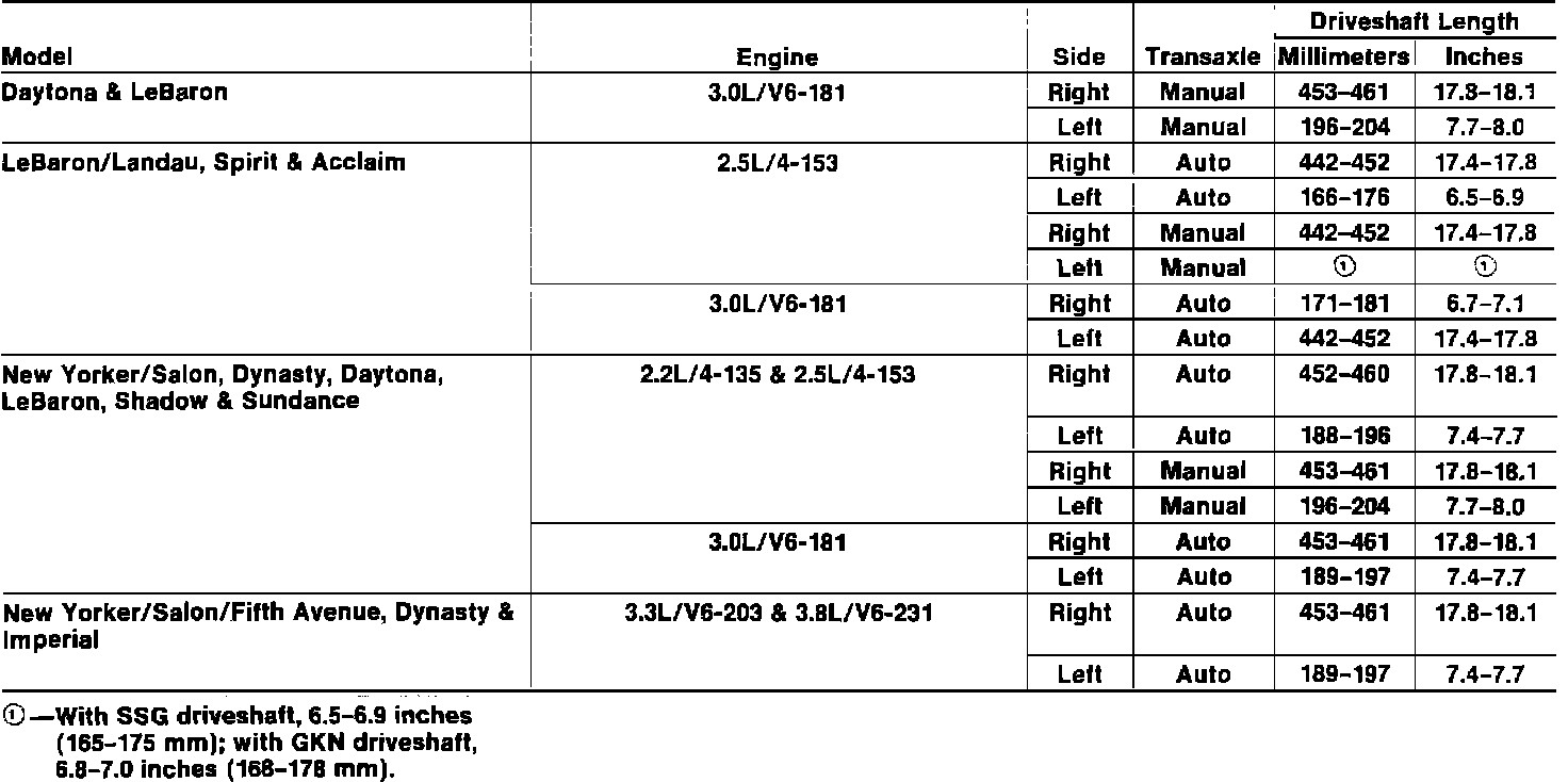 Fig 5 Driveshaft Length Specifications 1993 Models: