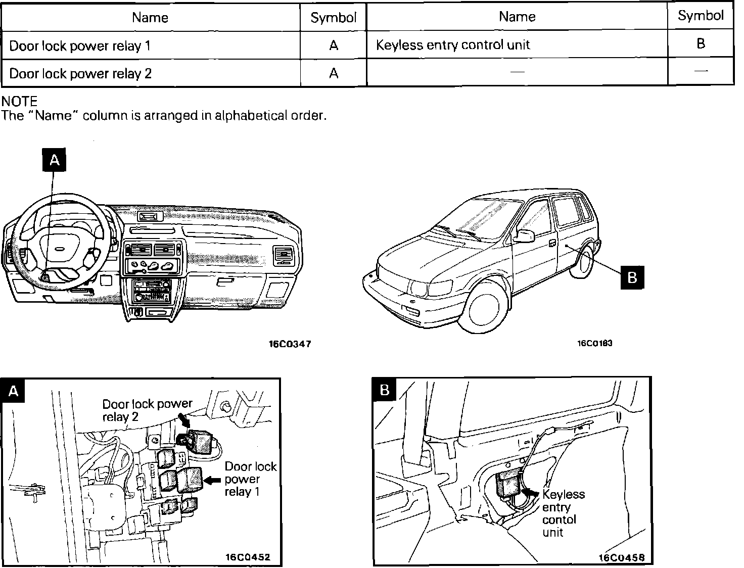 Central Door Locking System Component Locations: