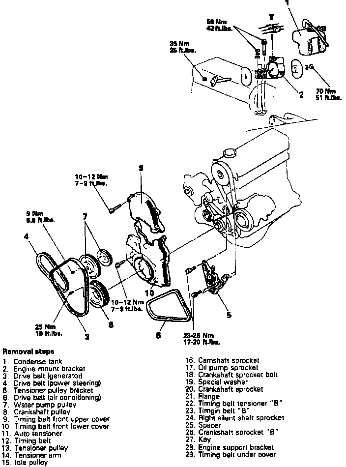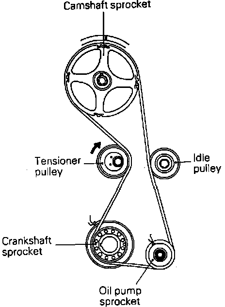 8. Mark rotational direction on timing belt B prior to removal.