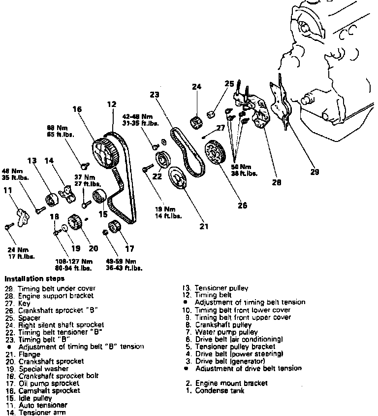 11. Install timing belt as follows: