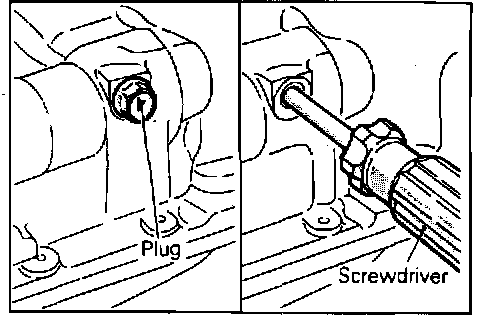 a. Remove screwdriver and install plug in side of cylinder block.
