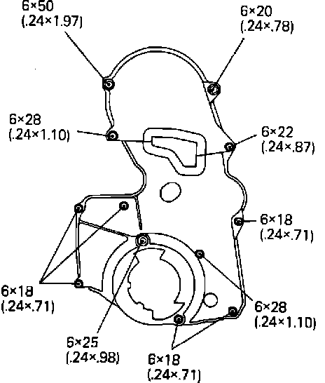 13. Install timing belt cover screws into proper location as shown in Fig. 50.