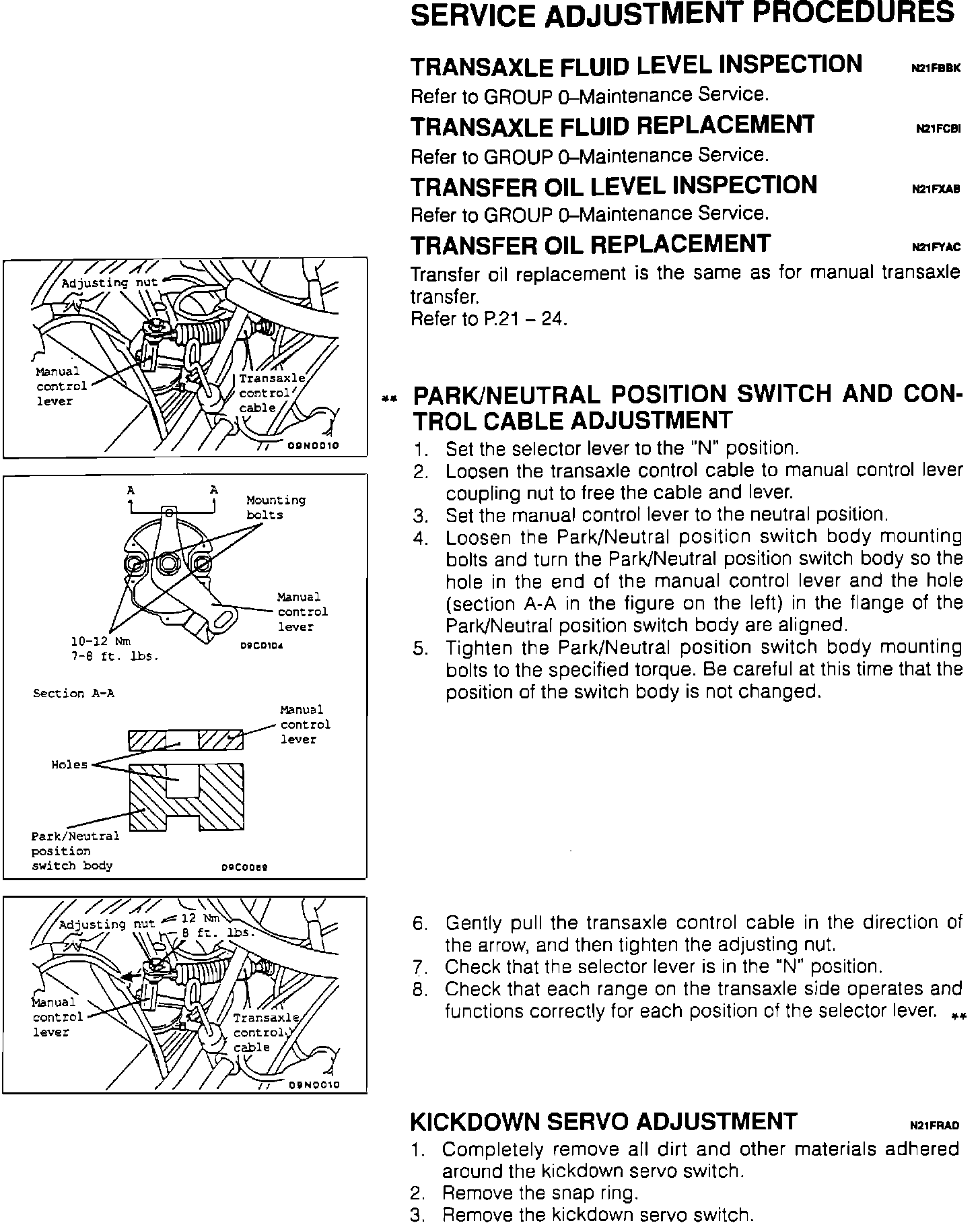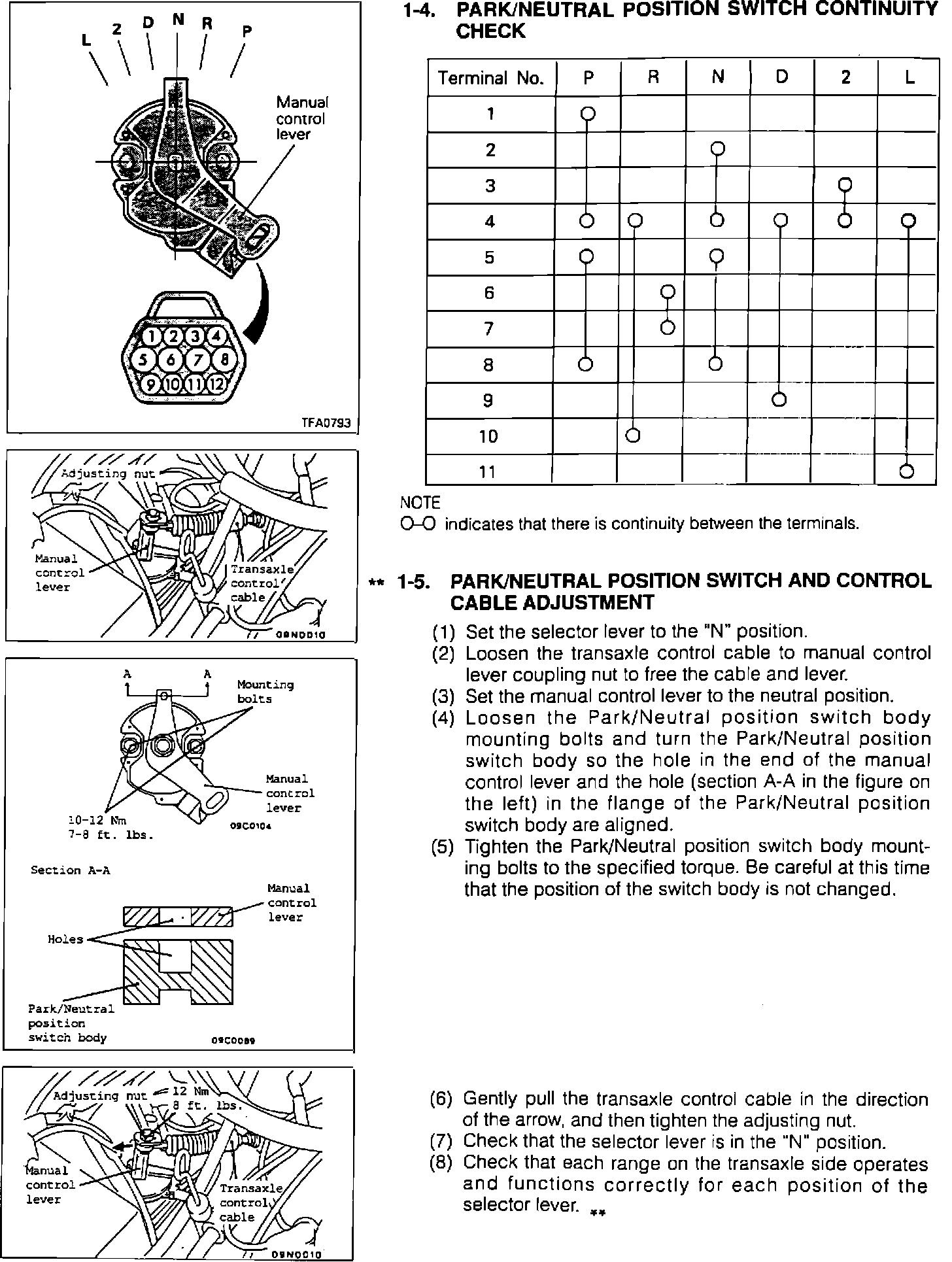Service Manual Revision [1][2]Park/Neutral Switch and Cable Adjustment