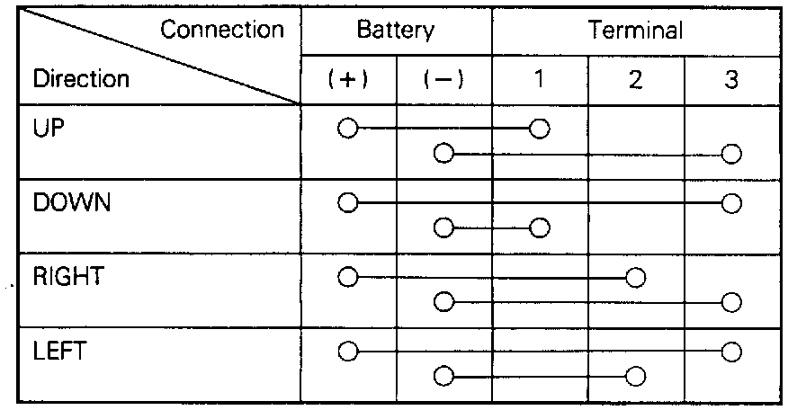 moves as described in the table below when each terminal is connected to the battery.