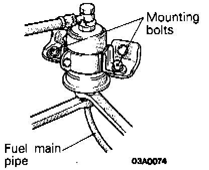 4. Remove the cross member, remove fuel filter mounting clamp bolt, and then remove the fuel filter from the clamp.