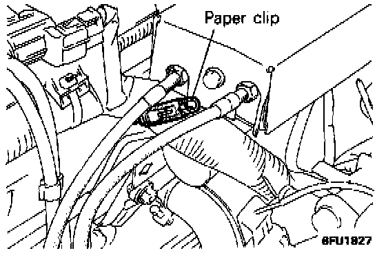 a. Insert a paper clip (from the harness side) into the 1-pin connector shown in the figure at the left.