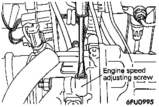 7. If not within the standard value range, turn the engine speed adjusting screw to make the necessary adjustment.