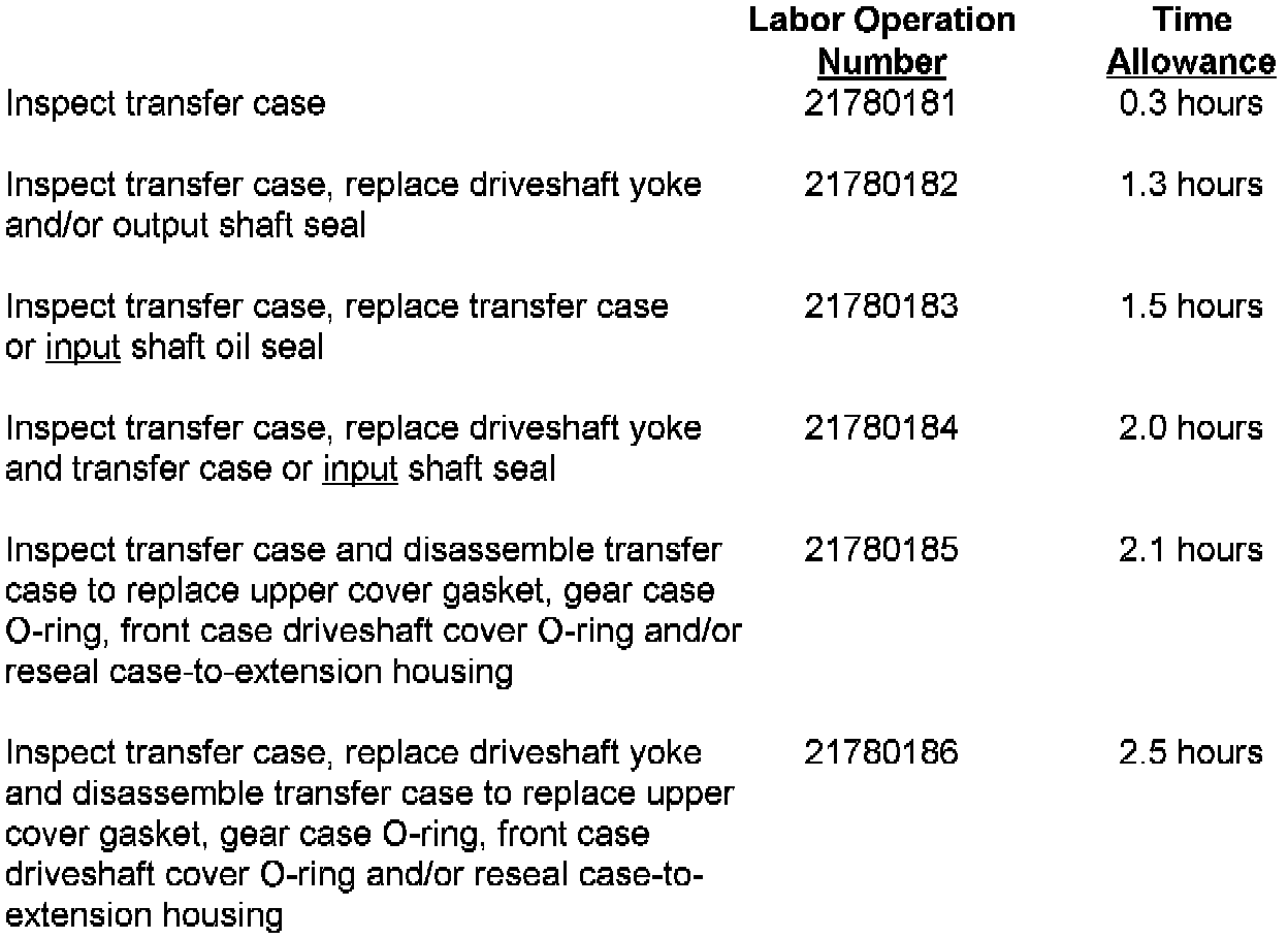 Safety Recall # 780 -- Transfer Case Oil Leak