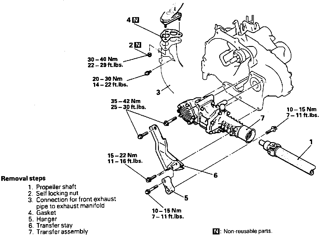 6. Reverse procedure to install, torquing transfer assembly bolts to 40-43 lb-ft.