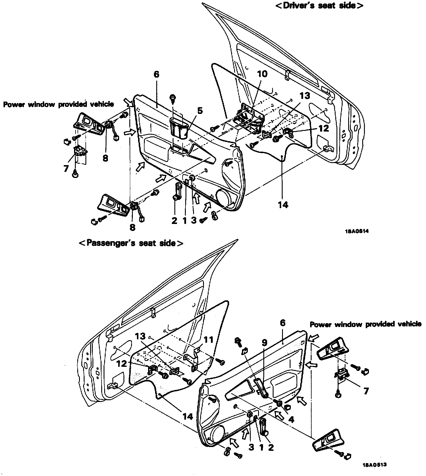 2. Light arrows show the installation position of trim clips.
