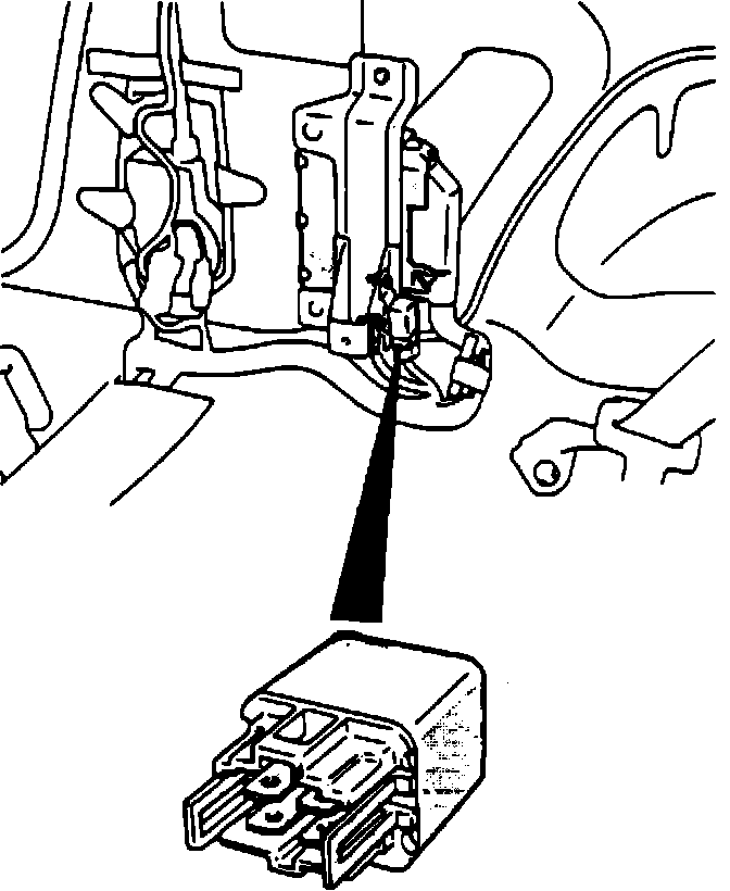 1. Remove Anti-lock Brake System (ABS) power relay from ABS control unit bracket as shown.