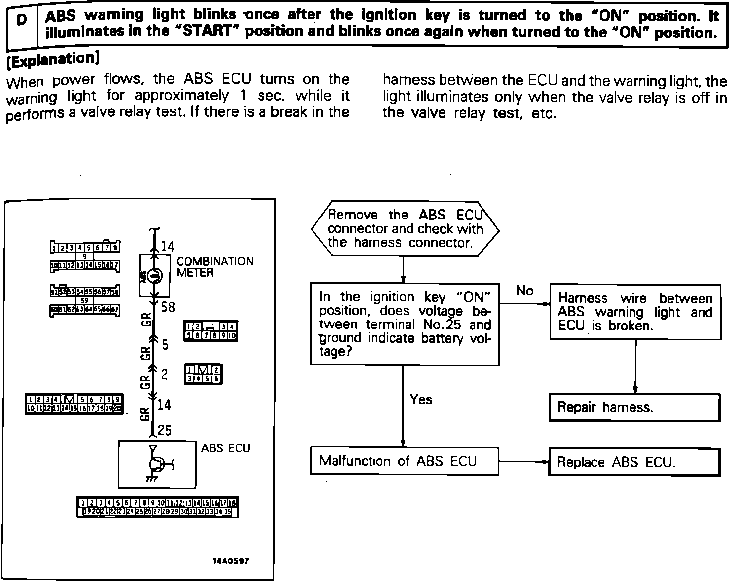 Fig. 43 ABS Chart D--ABS Warning Light Blinks Once After Ignition Key Is Turned To ``ON'' Position. It Illuminates In ``START'' Position & Blinks Once Again When Turned To ``ON'' Position AWD: