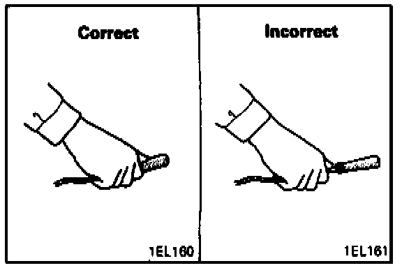 Note: Improper arrangement of spark plug cables will induce voltage between the cables, causing miss firing and developing a surge at acceleration in high-speed operation. Therefore, be careful to arrange the spark plug cables properly by the following procedure.