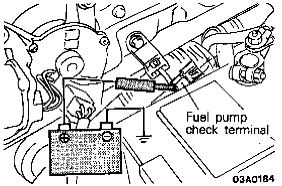 5. Apply battery power to the fuel pump drive terminal to activate the fuel pump. With fuel pressure applied check that no fuel is leaking at any of the connections.