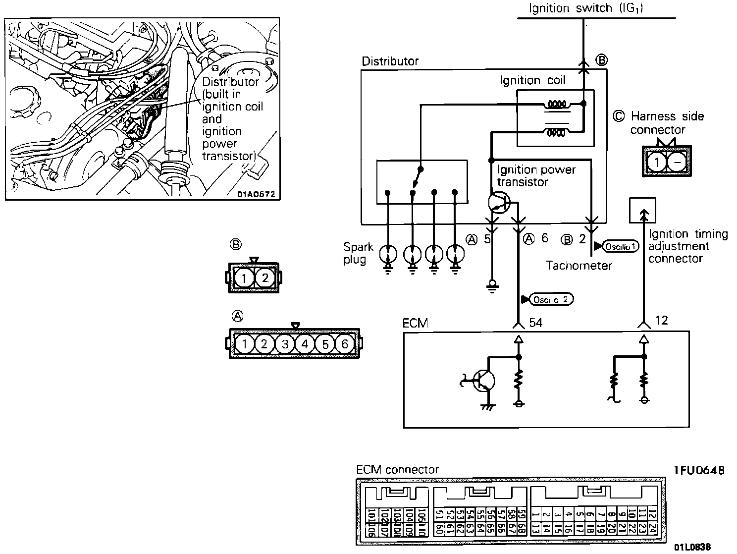 Note: To test the Power Transistor / Ignition Coil, located in the distributor, use an analog type circuit tester and proceed as follows: