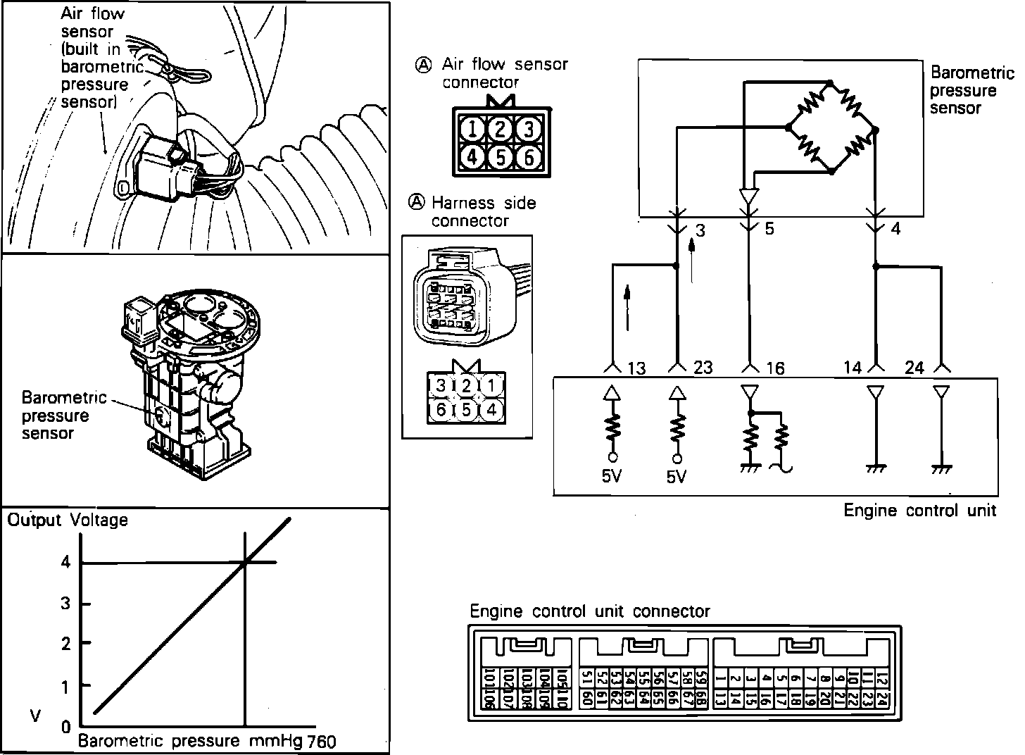1. Connect a voltmeter between terminals 4 and 5 of the AFS Sensor connector.