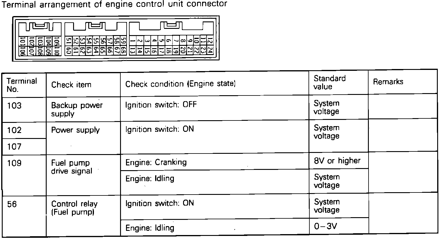If voltage measured differs from that listed on the chart, check the corresponding sensor, actuator, or related electrical circuit. After repairs have been completed, recheck voltmeter readings to confirm that the repair has corrected the problem.