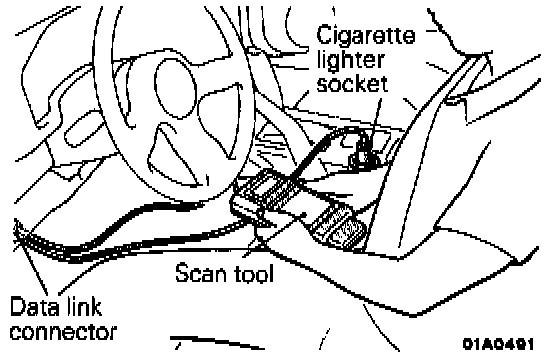 - Make certain that the ignition switch is at OFF when the scan tool is connected or disconnected.