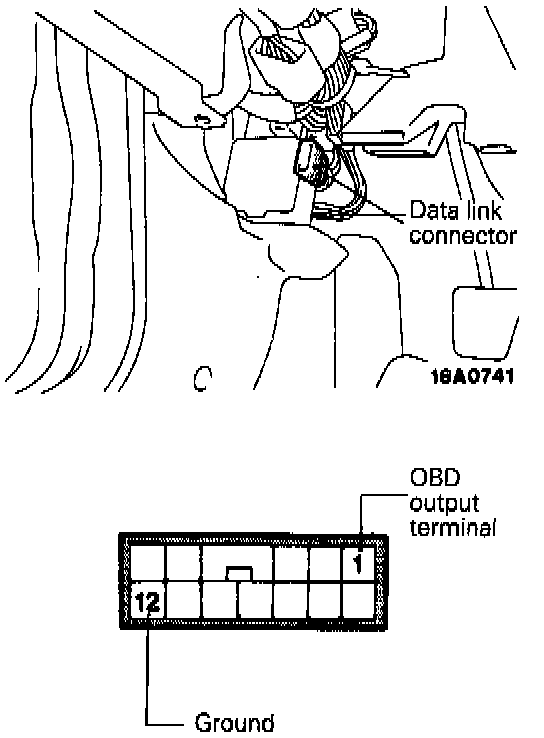 1. Connect an analog voltmeter between the on-board diagnostic output terminal of the data link connector and ground terminal.