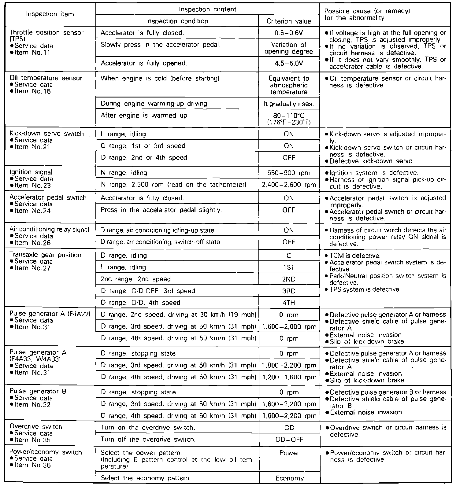 Transaxle Control System Diagnosis Chart (Part 2 Of 2):
