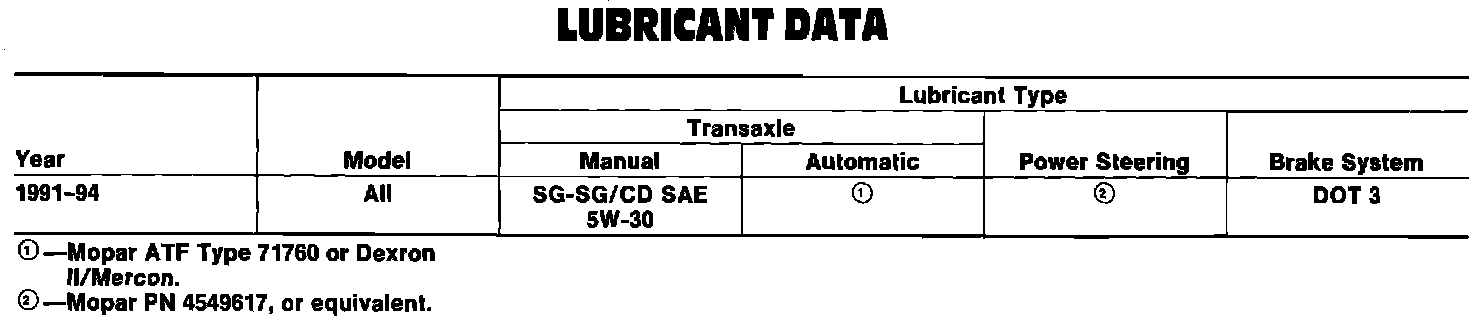 Manufacturer Recommended Lubricants: