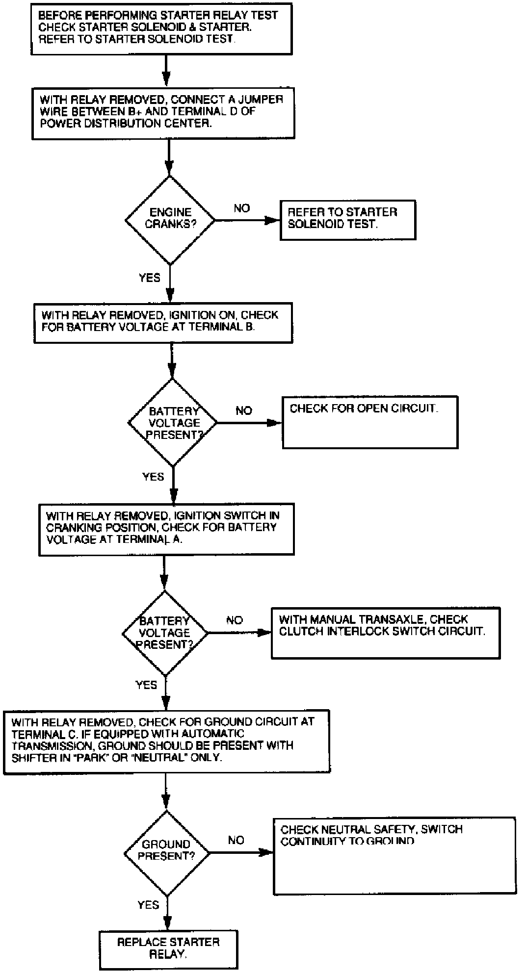 a. On Acclaim, LeBaron, Shadow, Spirit and Sundance models, refer to chart above for starter relay terminal identification.